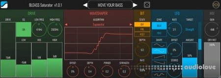 BLEASS Saturator has been designed to energize your basses, crush your drums, explode your leads in a beautiful yet destructive sound saturation.The BLEASS Saturator Effect Plugin features a multi-band gain drive, 9 different WaveShaper algorithms, a Pre/Post Bitcrusher, and a LFO to bring motion to your saturation!This versatile saturation effect processor comes packed with 40 Factory Presets, from classic stereo Drive to crazy metallic bitcrushed Saturations