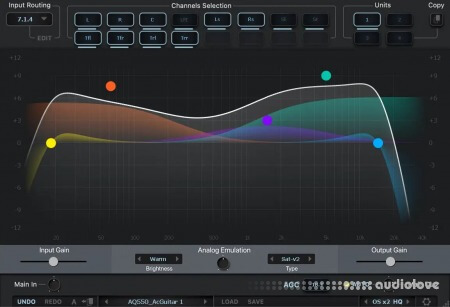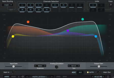 Input Routing lets you choose between 44 common channel setups, starting from Stereo up to 7.1.4 and 9.1.6