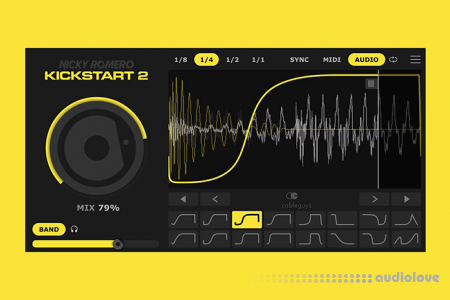The fastest plugin for pro sidechainingby Nicky Romero & CableguysWhat is Kickstart 2?Kickstart 2 instantly solves the problem of clashing, muddled kick and bass.Forget fiddling about with compressors – Nicky Romero and Cableguys put everything you need for professional sidechaining into one fast, easy plugin